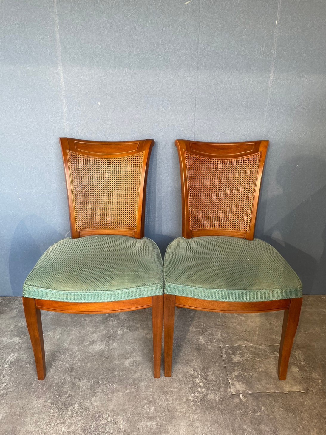 重厚感のある木製フレームと繊細な籐の編み込みが特徴的な椅子で、長年大切に使われてきたことが伺えます。