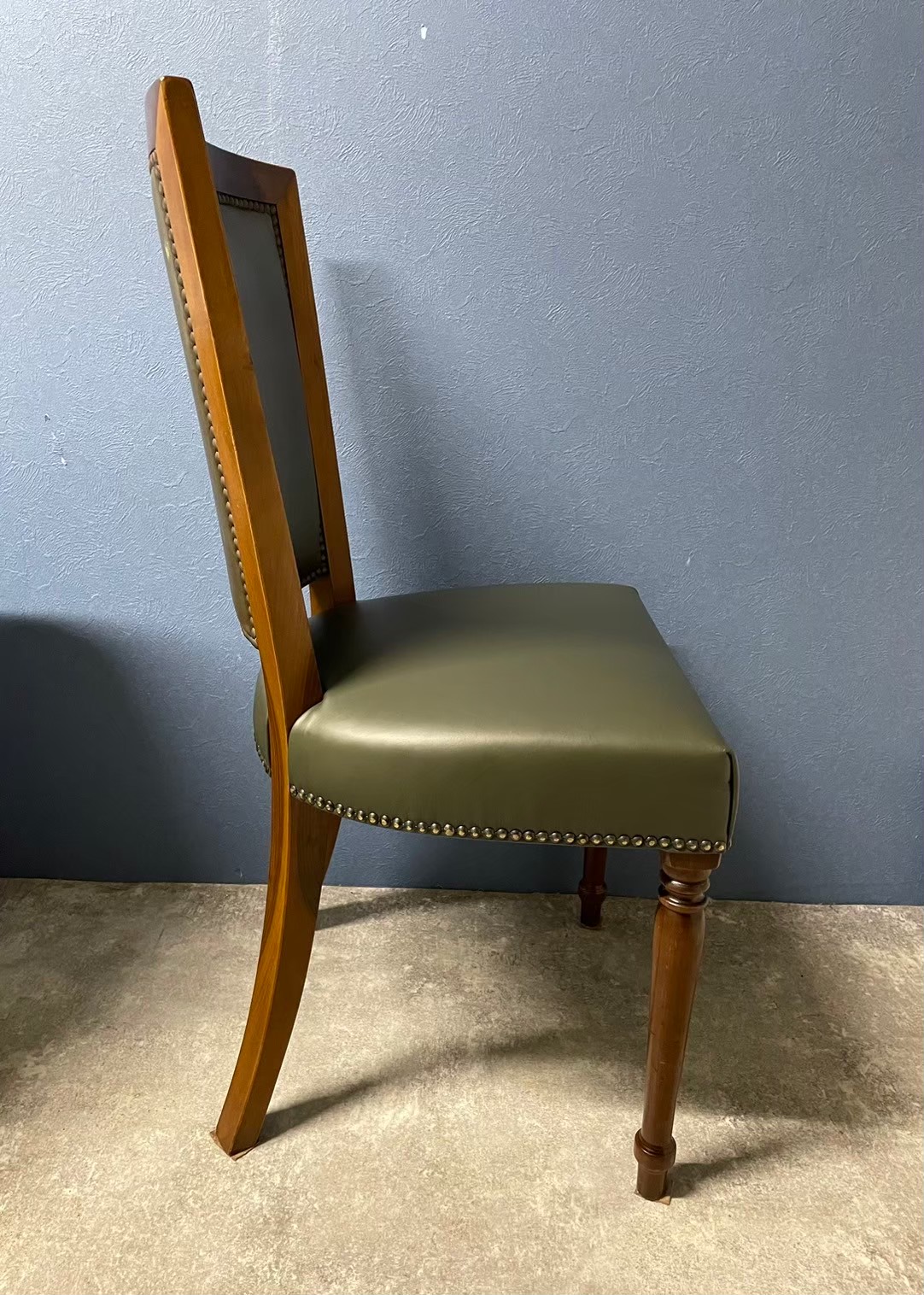 今回お預かりした椅子は、アンティークの加工のかかった革ですので完全に同じような革を選ぶことは出来ませんでしたがオーナー様にもご満足いただける仕上がりになりました。