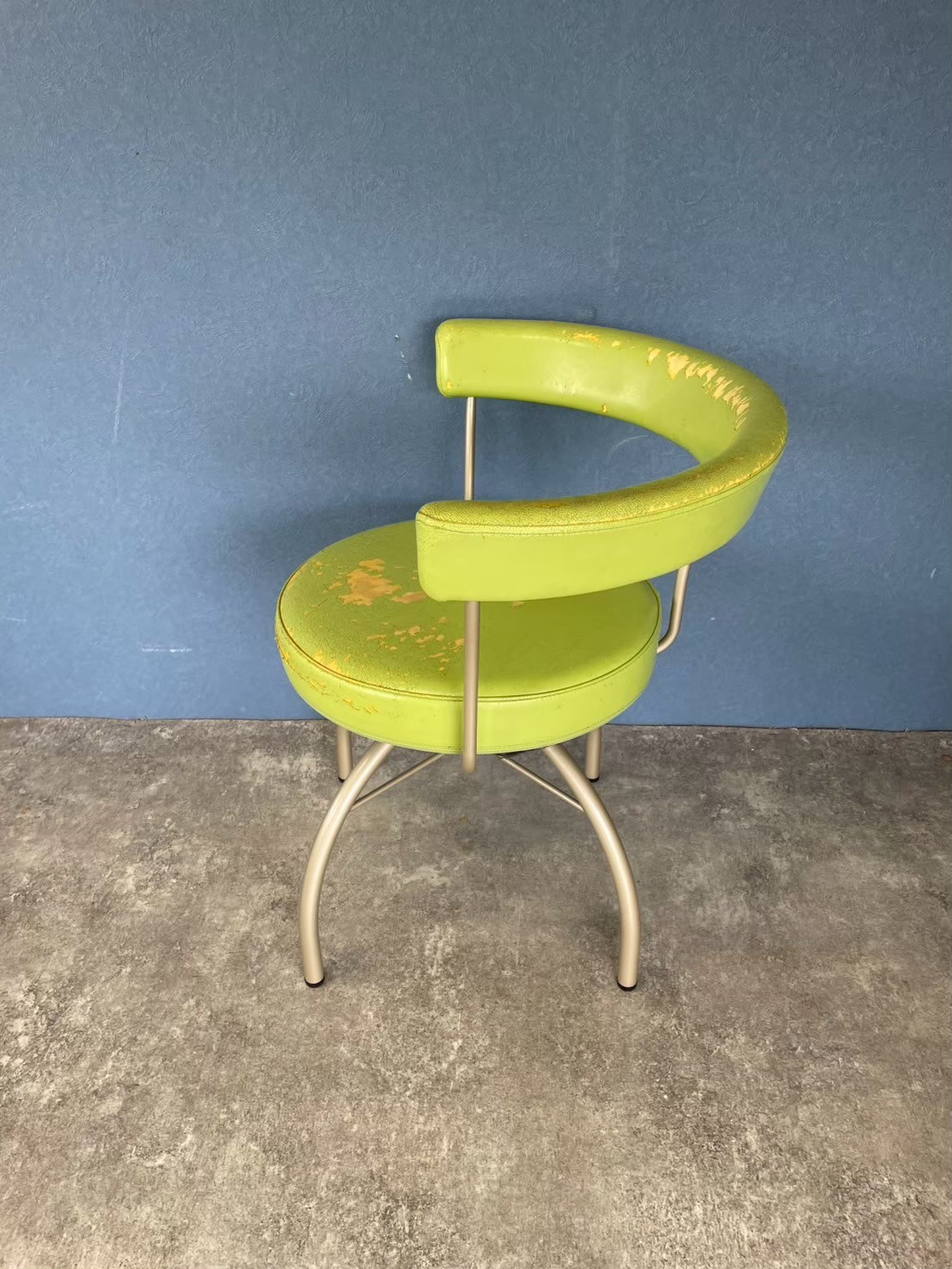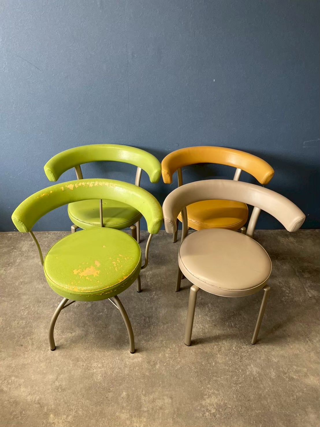 お預かりした椅子は、鮮やかでポップな黄緑とイエロー系の張り地でしたが、どの椅子も以下のような状態でした。