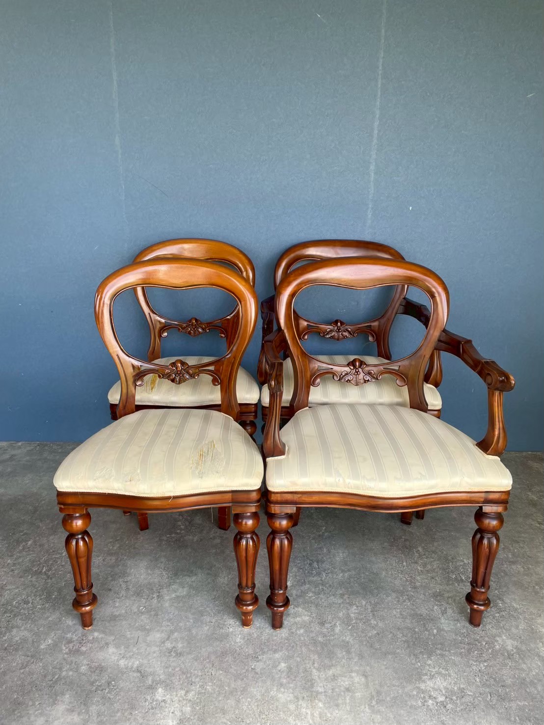 その優雅な曲線とクラシックな佇まいは、現代のインテリアにも自然に溶け込みながら、上質な空間を演出してくれます。今回は、港北区のお客様からご依頼いただいた アーム付き2脚・アームなし2脚、合計4脚のバルーンバックチェアの張り替え事例をご紹介します。