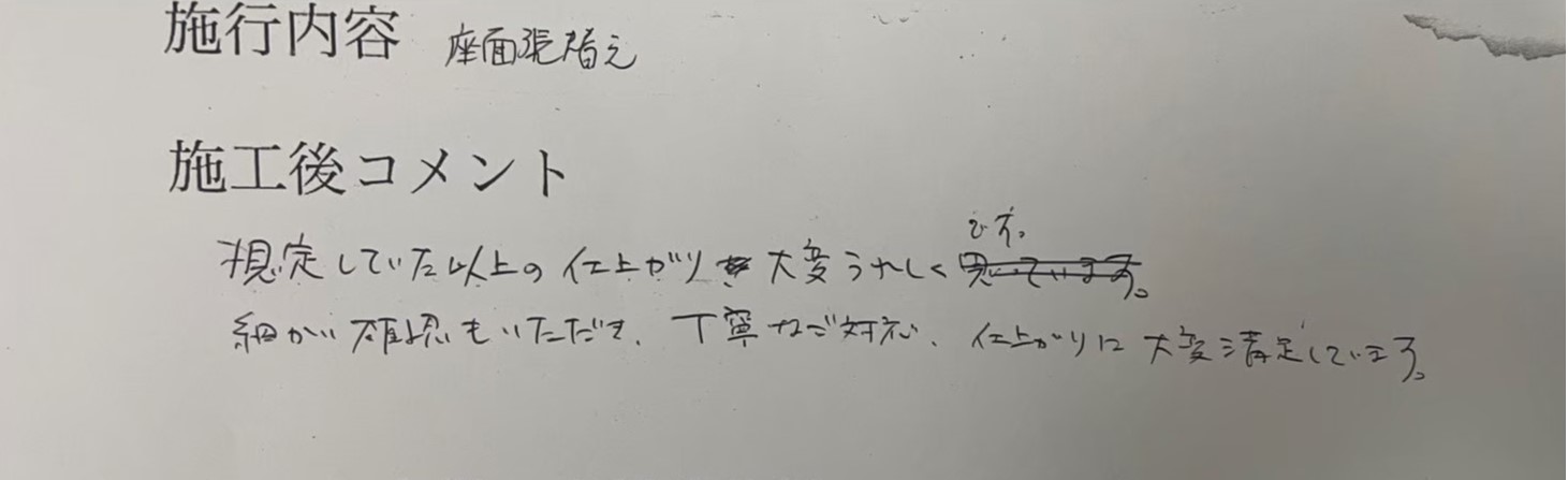細かい確認も頂き、丁寧な対応、仕上がりに大変満足しています。