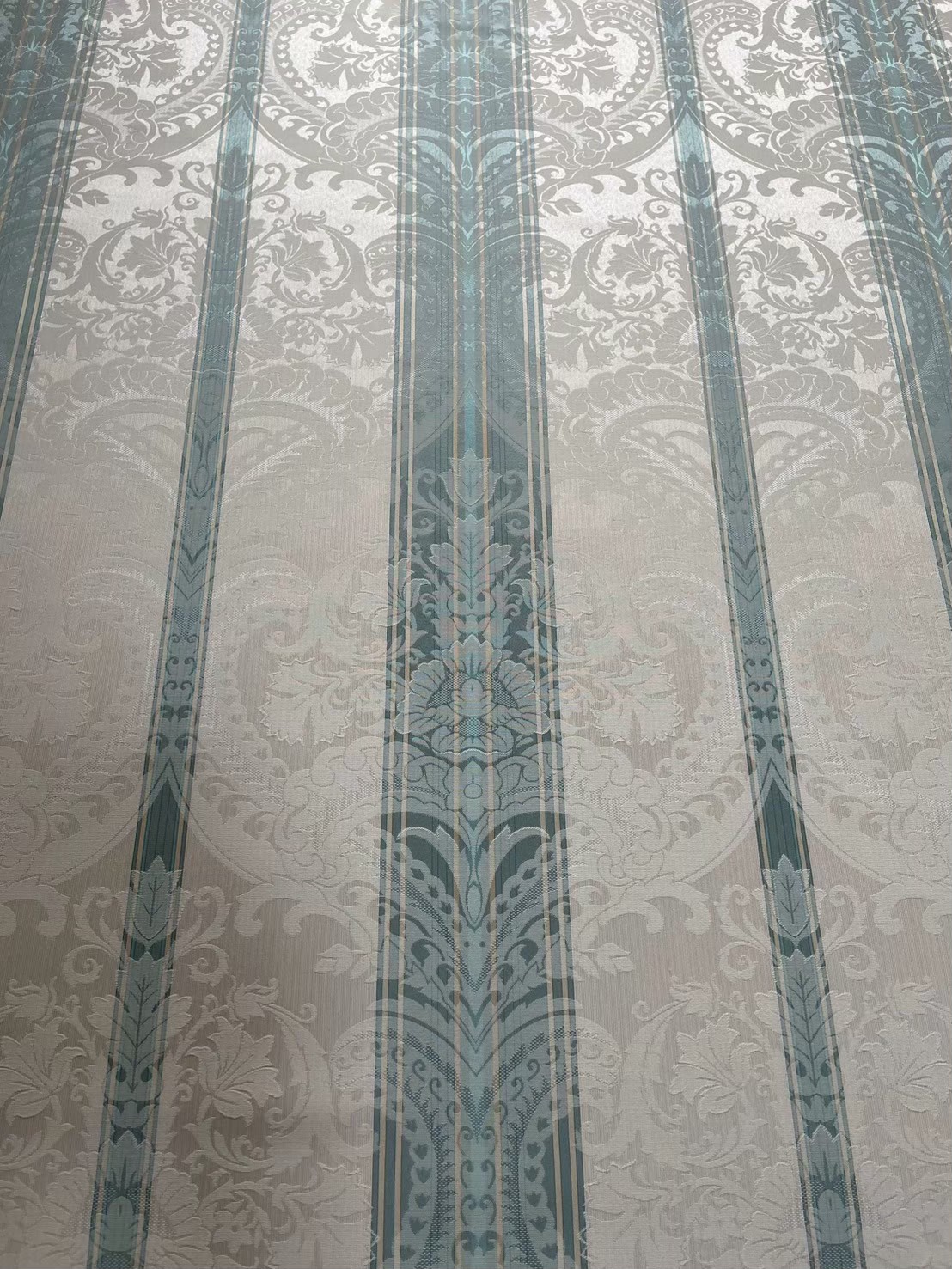 仕上がりは写真のとおり、奇麗なストライプのダマスク柄がとても映え、張り替え前とはまた違った雰囲気になりとても素敵でした。アンティークの風合いを保ちながら、