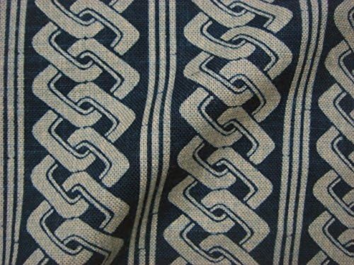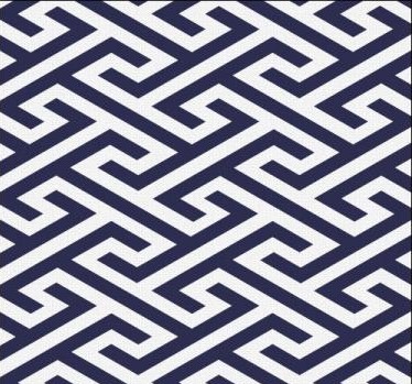 生地の柄は、直線が直角に折れ曲がりながら無限に連結していく、迷路のようなデザインです。