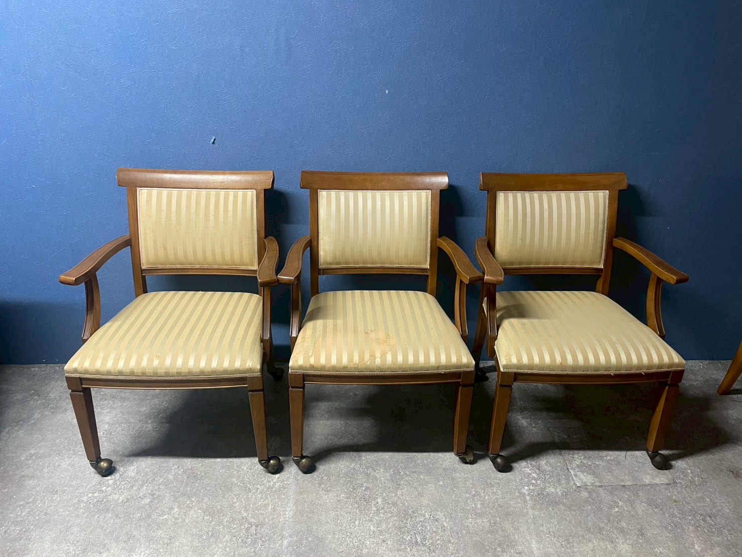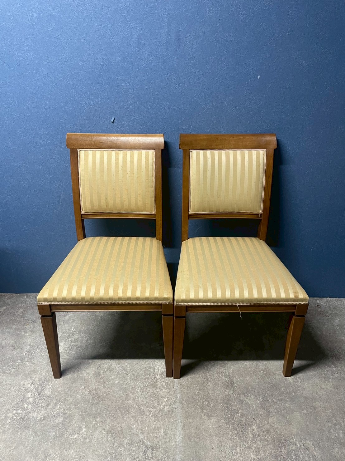 お預かりしたのは、クラシックなストライプ柄のダイニングチェア5脚です。