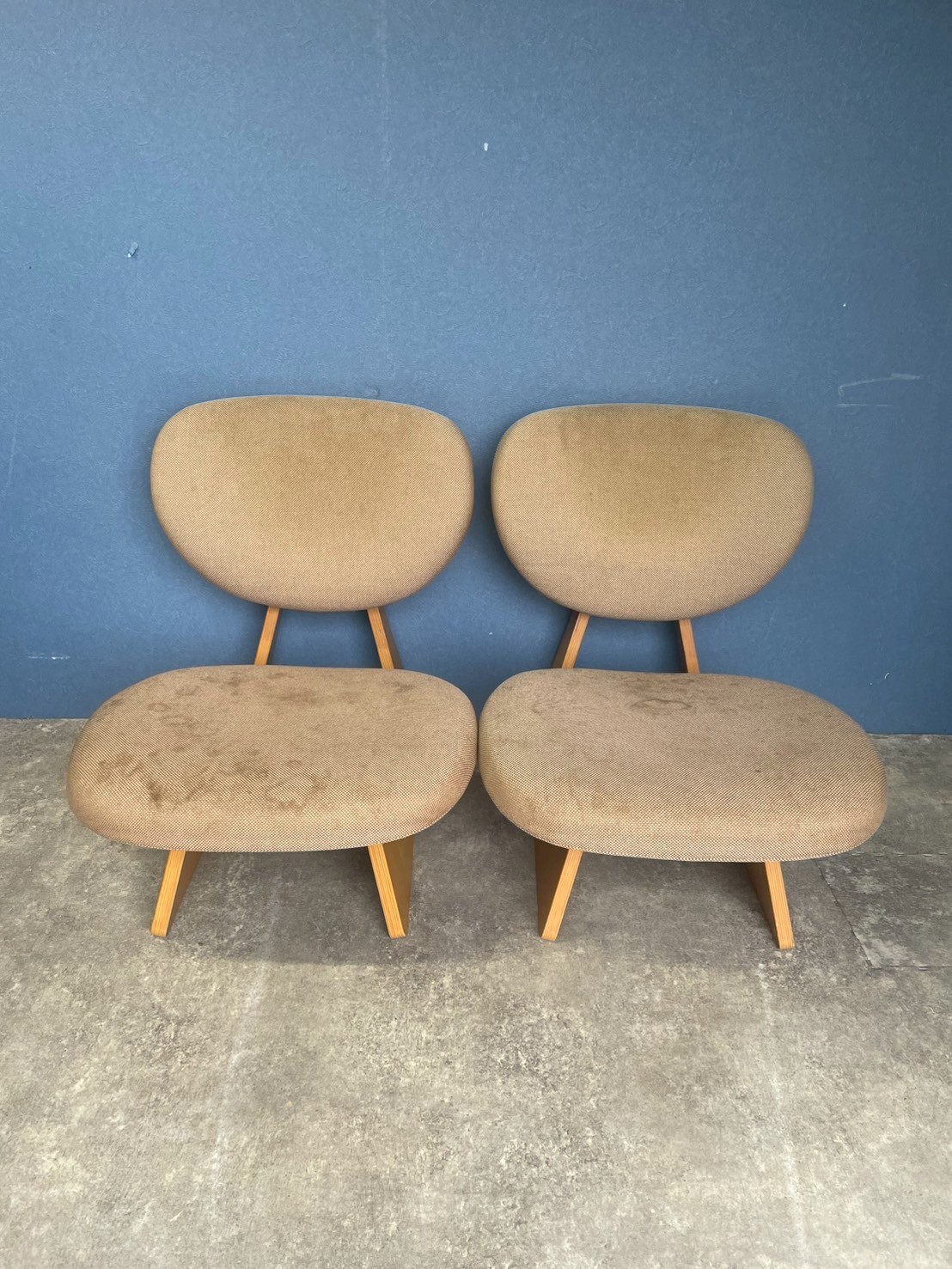時代を超えて愛される「ジャパニーズ・モダン」の傑作、天童木工の低座椅子。 今回は東京都新宿区にお住まいのお客様より、長年ご愛用されたこの椅子2脚の張り替えをご依頼いただきました。