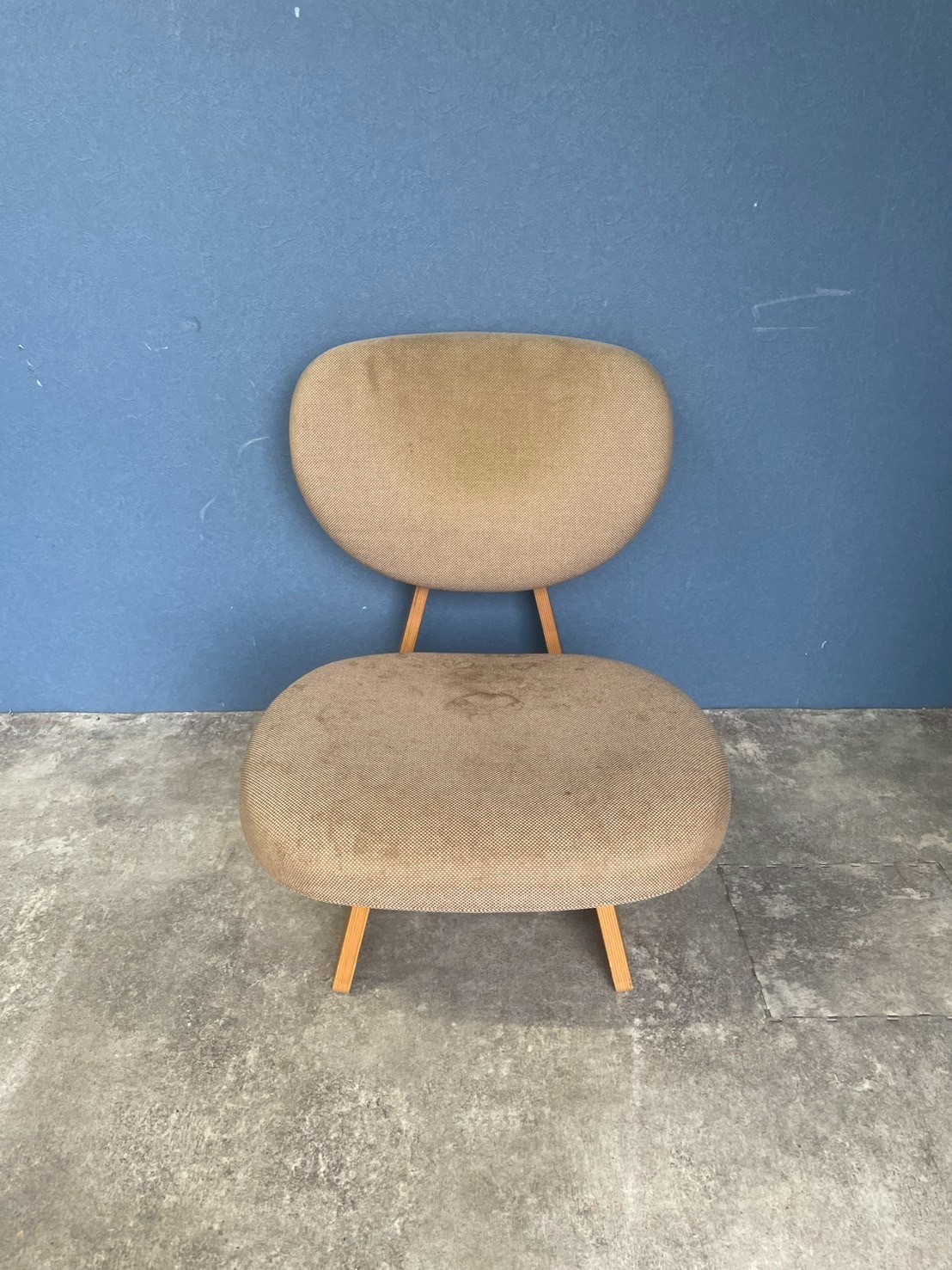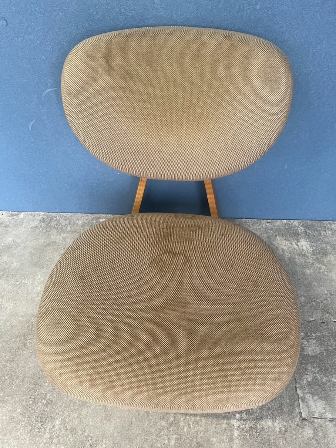 まず、今回お預かりした椅子について、その背景を少し紐解いておきましょう。 これは1960年に発売された天童木工の「低座椅子(S-5016NA-ST)」です。坂倉準三建築研究所の担当として長大作氏がデザインしたこの椅子は、20世紀の日本デザイン史における金字塔とも言える存在です。