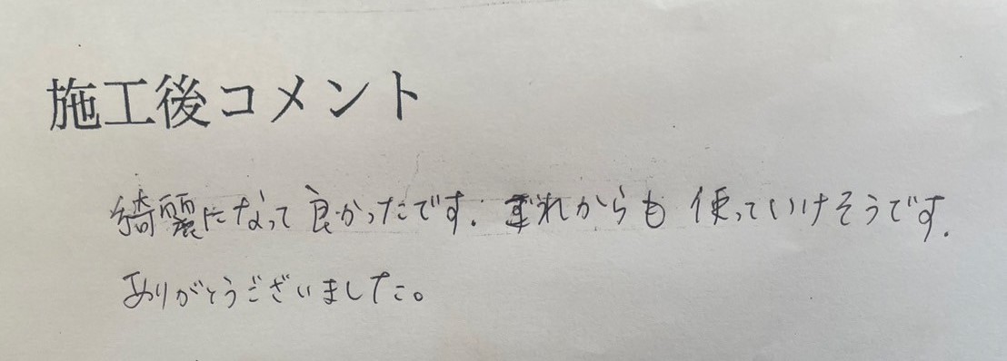 - 奇麗になって良かったです。これからも使っていけそうです。有難うございました。