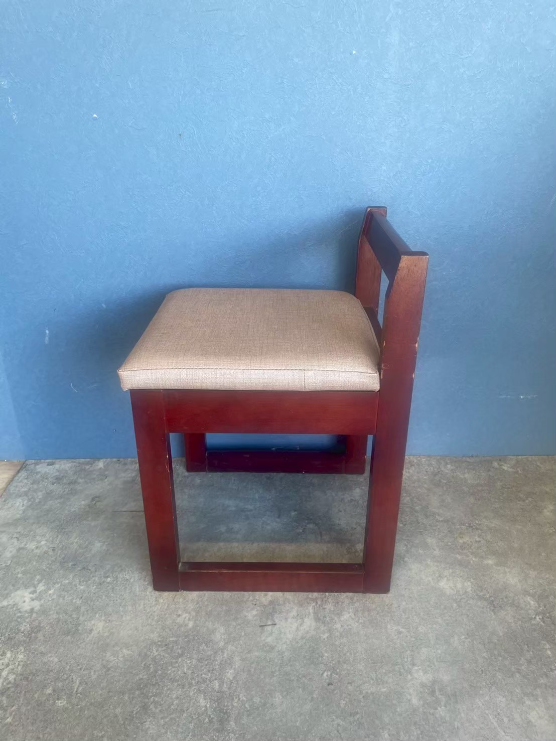椅子張り替えビフォーアフター:ウッドフレームの椅子 座面の生地張り替えとウレタン交換