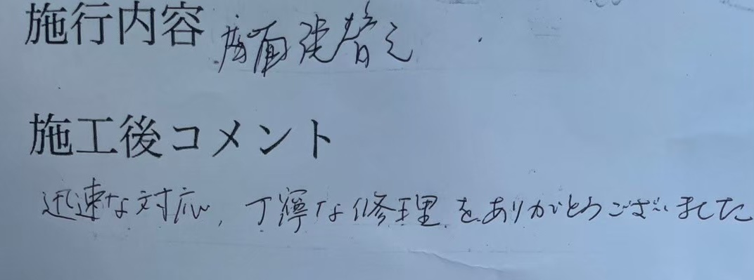 - 迅速な対応、丁寧な修理を有難うございました。