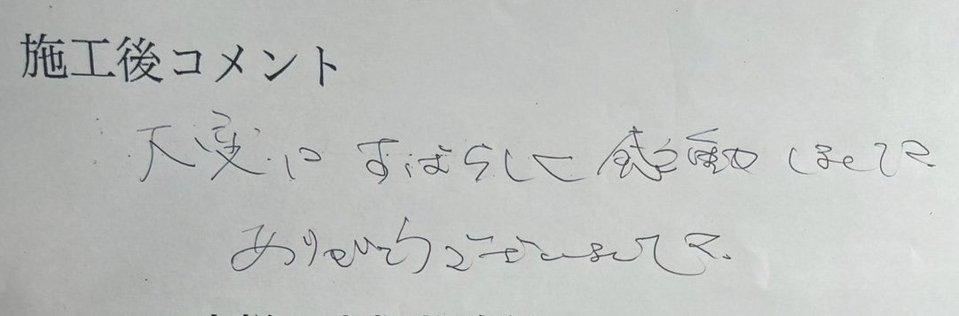 お客様からも、「大変素晴らしく感動しました」と、最高に嬉しいお言葉をいただきました。
