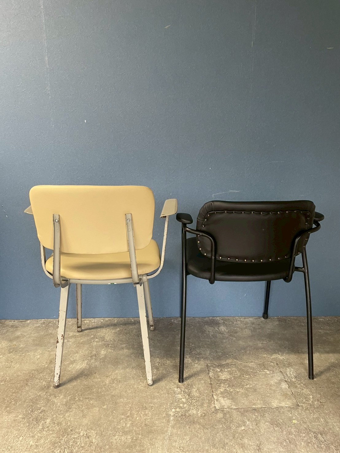 海外製の古くなってしまった布張りと合皮の椅子2脚、本革生地で張り替えと修理
