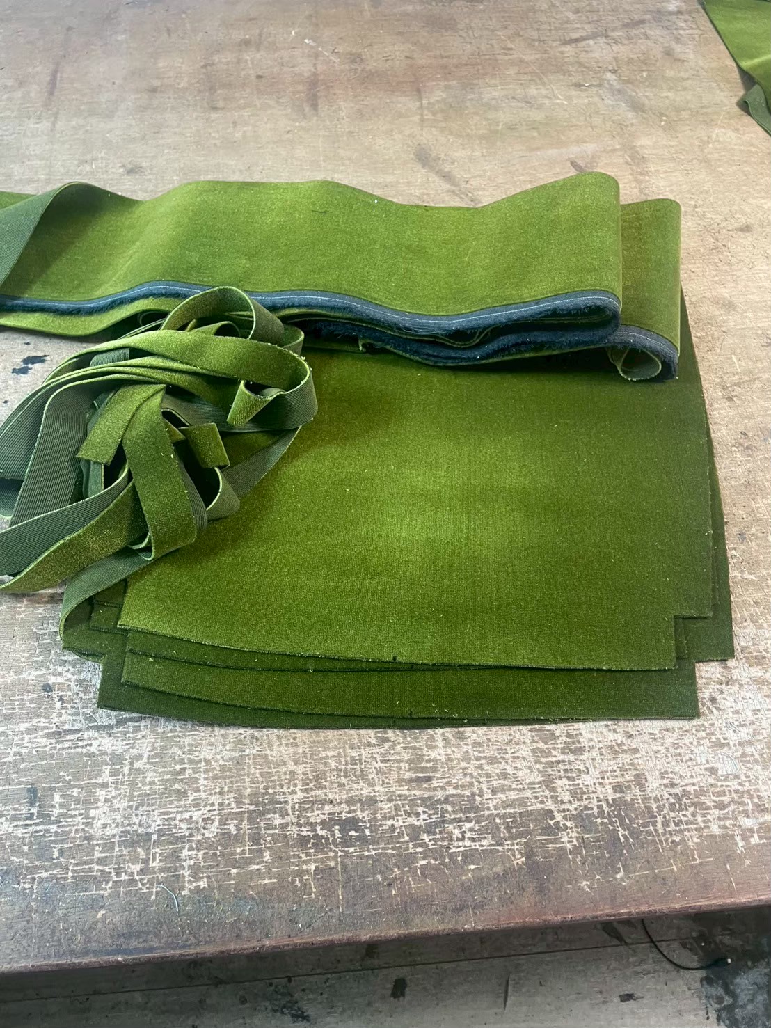 座面の周りの玉淵という細い芯を縫製し、マチと座面の生地を再度縫製し縫い合わせます。