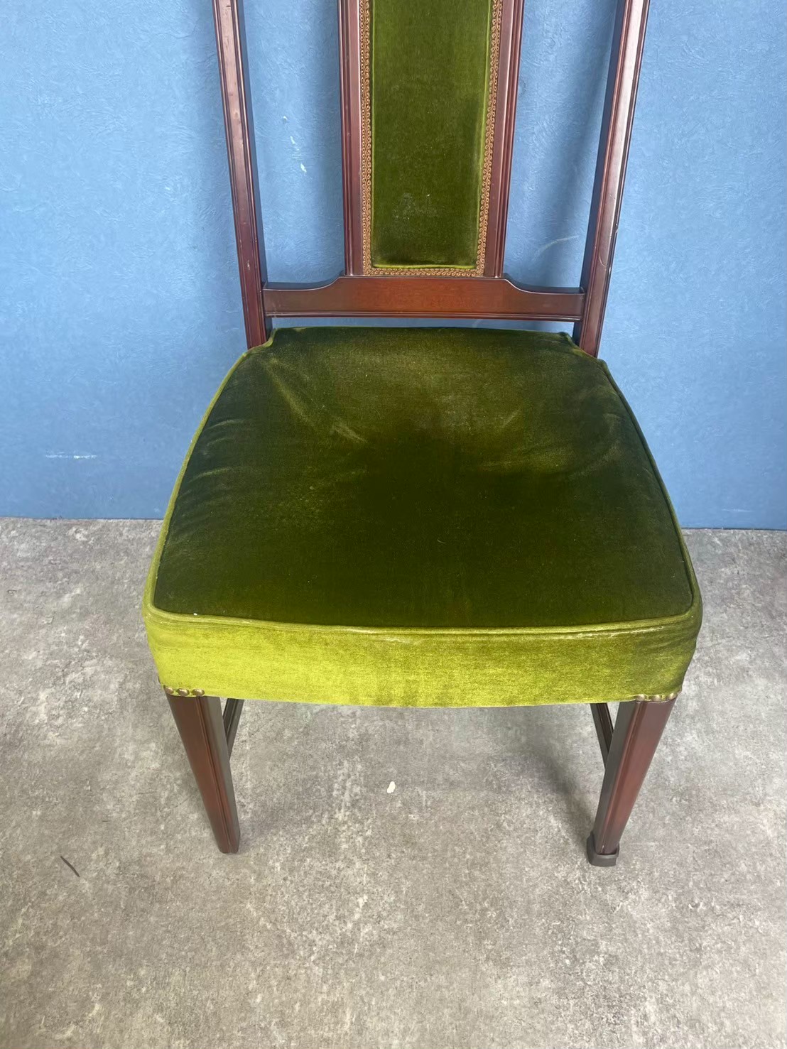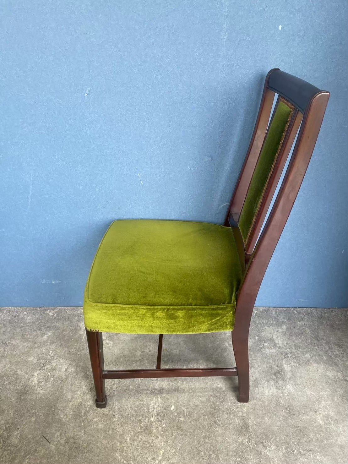 今回ご依頼いただいたのは、上品なグリーンのモケット素材が印象的な2脚の椅子。一見するとまだ綺麗に見えますが、座ってみると明らかな違和感がある状態でした。