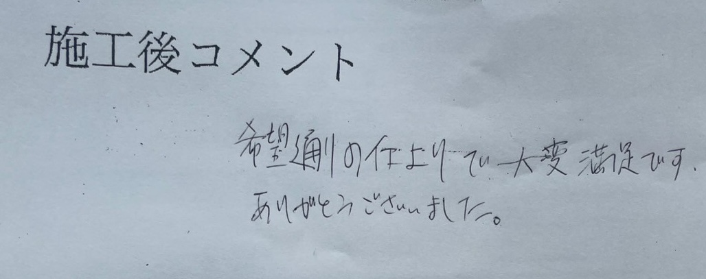 - 希望通りの仕上げで大変満足です。有難う御座いまいます。